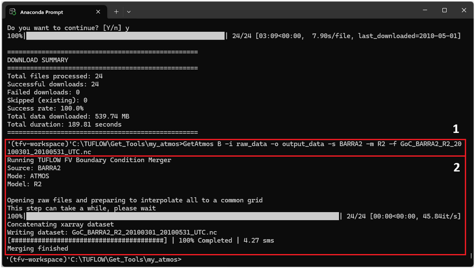 - Run Get Atmos B to merge the data ready for direct reading by TUFLOW FV.