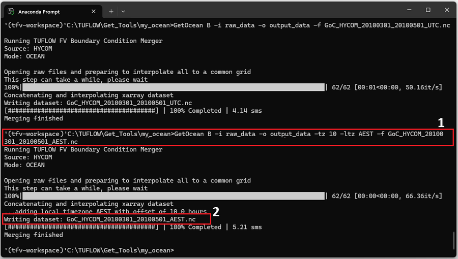 - GetOcean B – Merges the raw ocean data files into a single NetCDF file and creates a TUFLOW FV FVC (Boundary Include) file.